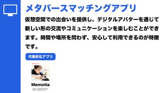 代表的なアプリには、「Memotia(メモティア)」などがあります。