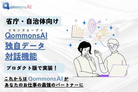 QommonsAIは、自治体や省庁の業務支援を目的とした生成AIツールで、全国の行政情報や学術論文を学習したAIが迅速で的確な情報提供を行います。このたび実装する独自データ対話機能は、自治体ごとに必要な資料を登録し、それをもとにAIと対話できる画期的な機能です。