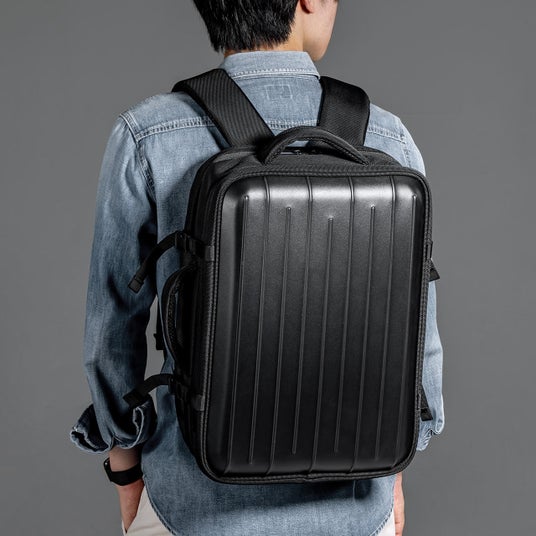 本製品はスーツケースのようなハードシェル素材を採用した衝撃に強いリュックです。 衝撃に強く軽量なポリプロピレン素材を採用しており、バッグの中身を守りながらもフットワーク軽く、アクティブに活用できます。