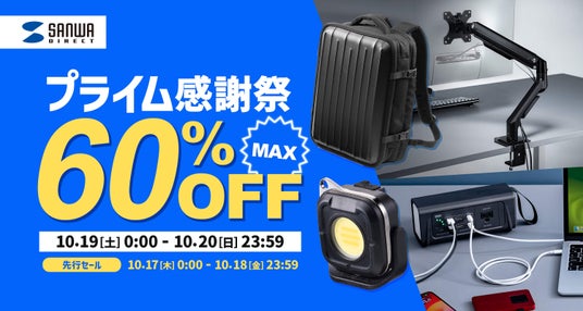 サンワサプライ株式会社(本社:岡山市北区田町1-10-1、 代表取締役社長 山田 和範)が運営するサンワダイレクト Amazon店は、Amazon.co.jpにて1789製品が最大60%OFFになるタイムセールを10月17日(木)から10月20日(日)までの4日間開催いたします。