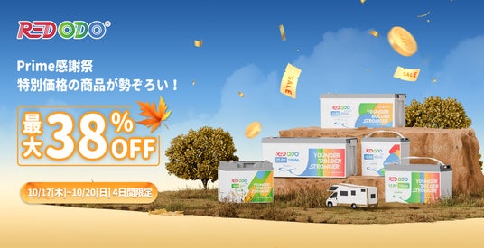 Redodo(レッドオド)は、10月17日(木)00:00から10月20日(日)23:59までの4日間にわたってAmazonで開催される「Amazonプライム感謝祭先行セール」および「Amazonプライム感謝祭」において、リン酸鉄リチウムイオンバッテリーを最大38%OFFで販売いたします。
