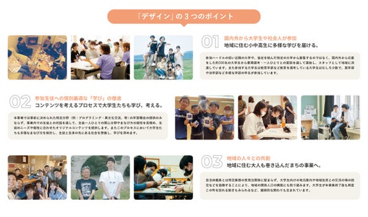 1.国内外から大学生や社会人が参加:地域に住む小中高生に多様な学びを届ける。