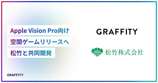 ARエンタメのGraffity株式会社(代表取締役社長:森本俊亨、本社:東京都渋谷区、以下「Graffity」)は、松竹株式会社(所在地:東京都中央区、代表取締役社長:高橋 敏弘、以下「松竹」)と業務提携を締結し、グローバル展開を見据えたApple Vison Pro向け空間ゲームの共同開発に着手することを発表しました。GraffityのApple Vision Pro向け空間ゲーム企画力・技術力と松竹のグローバルへのパブリッシング力を掛け合わせることで、より多くのユーザーに優れたコンテンツを提供することを目指しています。