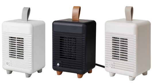 持ち運びしやすい取っ手付きでトイレや、脱衣所、キッチン、デスク周りなど暖房で暖まりにくい場所でも使いやすいコンパクトファンヒーター