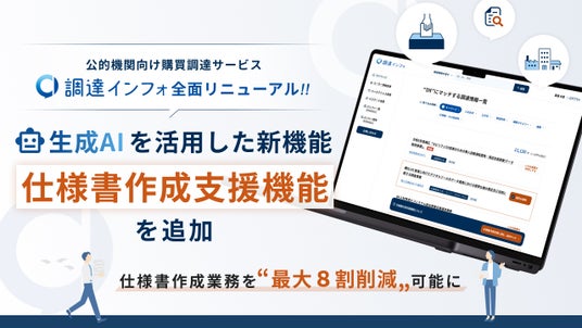 本リニューアルでは、公的機関の調達業務を効率化する、生成AIを活用した「仕様書作成支援機能」が新たに追加されております。また「調達インフォ」の有料導入公的機関数が、2024年9月末時点で100機関を突破したことも併せてお知らせいたします。