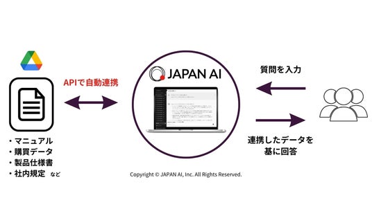 JAPAN AI株式会社(本社:東京都新宿区、代表取締役社長:工藤 智昭、以下JAPAN AI)は、提供しているAIサービス「JAPAN AI CHAT」において、Google LLC(本社:アメリカ合衆国カリフォルニア州、CEO:Sundar Pichai、以下Google)が提供するストレージサービス「Google Drive」とのAPI連携に対応したことをお知らせします。