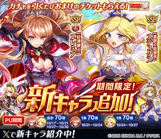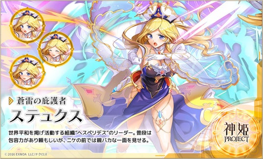 合同会社EXNOA(本社:東京都港区、CEO:村中 悠介、URL:https://games.dmm.com/)が運営するDMM GAMESにおいて『神姫PROJECT』は、「ヱレミア」「ステュクス」が新たな神姫として初登場する事を発表した。さらに毎日最高100連のルーレットガチャの開催や、10月14日よりプレミアムパスの特典が更新された。
