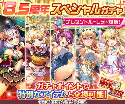 8.5周年記念のキャンペーンとして、毎日最高100連無料ガチャが当たるプレゼントルーレットを開催します!