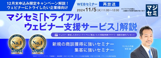 本ウェビナーではマジセミのサービスより詳細に解説した内容となっております。本ウェビナー参加者限定のご発注特典もついておりますので、是非ご参加くださいませ。