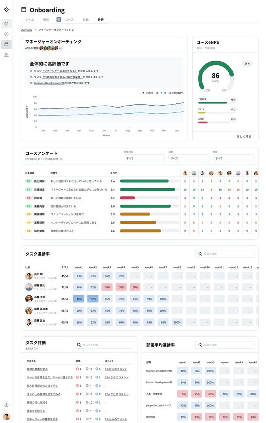 人材開発・オンボーディングアプリケーションは、職種・階層別イネーブルメント機能強化や、ピープルアナリティクスを支援するために、さまざまな機能追加を予定しております。
