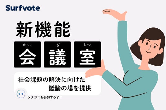 社会課題に誰でも簡単に参加できるSNS「Surfvote」で、ユーザー同士がイシュー毎に議論を深める新機能「会議室」が登場!全国初の試み、AIファシリテーター「ツクヨミ」がユーザーの議論をリード!