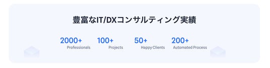 - 攻めのDX推進ただのIT運用ではなく、企業のデジタル戦略を支援します。業務効率の向上や新しいビジネスモデルの構築を目指し、経験豊富なプロフェッショナルチームが最適なDX施策を提案。実行支援まで行います。