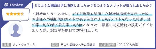 ・顧客に特定機能の設定ガイドを出した際、設定率が数日で20%向上した。