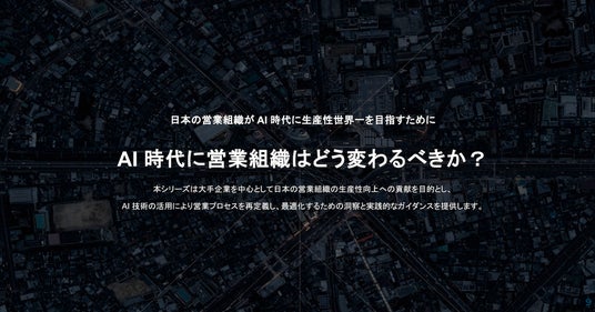 本シリーズは、AI 技術の活用により営業プロセスを再定義し、最適化するための洞察と実践的なガイダンスを提供することで、大手企業を中心とした日本の営業組織の生産性向上への貢献を目指しています。