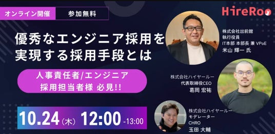 「日本をもう一度、モノづくりで一番へ。」を掲げ、企業のエンジニア強化プラットフォームを提供する株式会社ハイヤールー(本社:東京都渋谷区、代表取締役:葛岡宏祐)は、2024年10月24日(木)に「優秀なエンジニア採用を実現する採用手段とは」をテーマに株式会社出前館 執行役員 米山輝一氏を招いたオンライントークイベントを開催します。