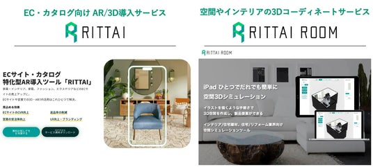 - オンラインショップやカタログに手軽に「AR試し置き機能」や、「商品3Dビュワー機能」などを導入できるサービス「RITTAI」