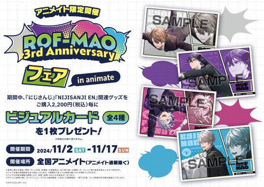 また、全国のアニメイトにて2024年11月2日(土)~2024年11月17日(日)に「にじさんじ ROF-MAO 3rd Anniversary フェア in animate」を開催!詳細は記事後半をご確認ください。