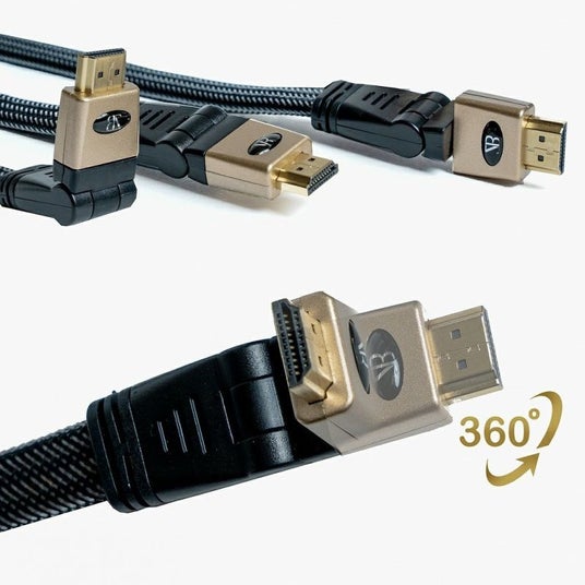 私たちの新作HDMIケーブルは、ポートが縦位置でも横位置でも、好きな角度にケーブルを伸ばすことが可能です。