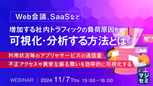 マジセミ株式会社は「【Web会議、SaaSなど】増加する社内トラフィックの負荷原因を可視化・分析する方法とは」というテーマのウェビナーを開催します。
