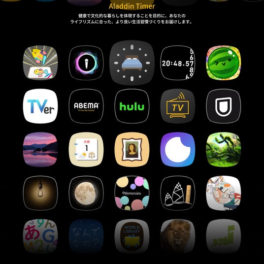 数字が動き出すデジタル時計や大きなサイズのアナログ時計まで、気分に合わせてお部屋の時計を変えられる「壁時計」、時間や季節に合わせて美しい風景を演出する「美風景」、子どもたちの素朴な疑問に答える「なんでなの」や「スイカゲーム(R)」など、部屋の雰囲気を変えるインテリアコンテンツから親子のコミュニケーションに役立つコンテンツまで、多彩なオリジナルアプリをお楽しみいただけます。