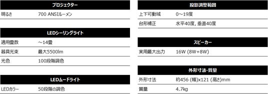 短焦点レンズを搭載、輝度700ANSIルーメン、フルHDで鮮明な大画面を実現します。