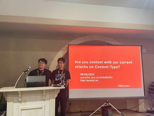 “Are you content with our current attacks on Content-Type?”と題し、Amazon S3に代表されるオブジェクトストレージを利用したアプリケーションを対象とした攻撃手法に関する独自の研究を発表しました。