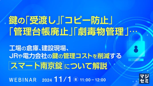 マジセミ株式会社は「鍵の「受渡し」「コピー防止」「管理台帳廃止」「劇毒物管理」…」というテーマのウェビナーを開催します。