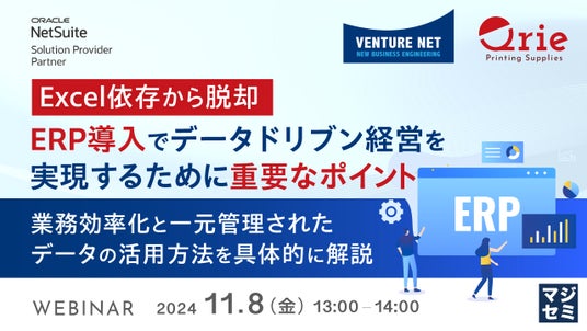 マジセミ株式会社は「"Excel依存から脱却"ERP導入でデータドリブン経営を実現するために重要なポイント」というテーマのウェビナーを開催します。