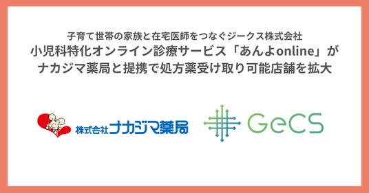 小児科にかかりたい子育て世帯と在宅で働く医師をつなぐオンライン診療サービス「あんよonline」を運営するジークス株式会社(愛知県名古屋市、代表取締役社長CEO:村上嘉一、以下「当社」)は、株式会社ナカジマ薬局(北海道札幌市、代表取締役社長:中島久司)と提携し、福岡県における処方薬受け取り可能店舗を全国に拡大いたします。