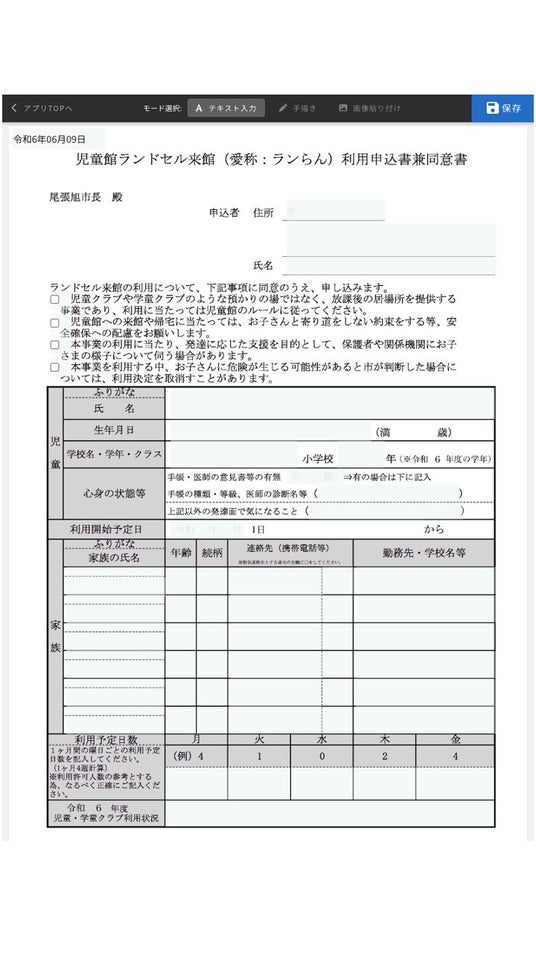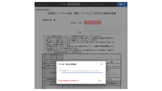 「児童館ランドセル来館(愛称・ランらん)利用申込書兼同意書」に採用いただきました。尾張旭市のホームページからQRコードもしくはリンクで誰でも入力フォームに移動することができます。これまでは紙での記入がメインであったため、申請データの取りまとめに手間を要する困難な状況でしたが、Photolizeを利用することにより、容易になります。また、SDGsにも掲げられている紙の削減にもつながります。また本人(保護者)が直接入力することにより、OCRなどで起こりがちなデータの確認や補正の処理がなくなります。