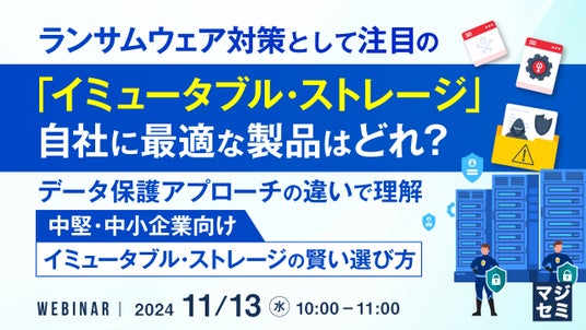 マジセミ株式会社は『ランサムウェア対策として注目の「イミュータブル・ストレージ」、自社に最適な製品はどれ?』というテーマのウェビナーを開催します。