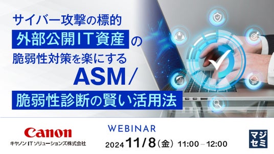 マジセミ株式会社は「サイバー攻撃の標的「外部公開IT資産」の脆弱性対策を楽にするASM/脆弱性診断の賢い活用法」というテーマのウェビナーを開催します。