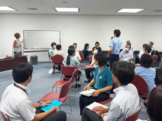 第2期となる本講座はトレーナー(受講者)が全職員にマインドフルネスを広められるよう支援することを目的とし、労務管理を担う「課長補佐」や、職員の健康管理を担う「地区衛生管理者(保健師等)・臨床心理相談員」の役割を担う職員を対象としています。第2期のTTT講座は9月2日に開講され、35名の職員が参加しました。