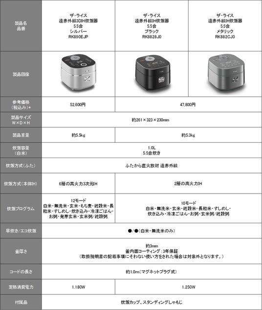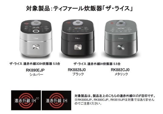 キャンペーン対象製品は、今年6月に発売された3次元IHを搭載した最上位モデル「ザ・ライス遠赤外線3DIH炊飯器5.5合」と、10月に発売された定番モデル「ザ・ライス遠赤外線IH炊飯器5.5合」です。今年発売されたティファールの炊飯器を、この機会にぜひお試しください。