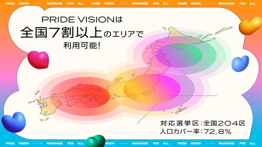 全国には289の小選挙区があるため、現時点で約71%の小選挙区を利用可能なエリアとしてカバーできたことになります。また、日本の総人口で計算すると約72%をカバーできたことにもなり、今回の衆院選に際して「PRIDE VISION」が全国の有権者の政治参加や候補者選びを促進できる仕組みになれたと考えます。