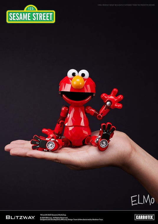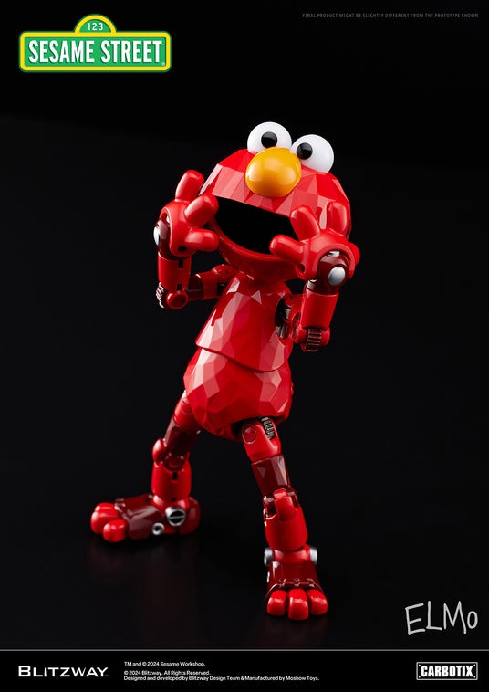 ポリゴンパターンで表現された赤い毛と特別にエルモらしい愛らしい動きが表現できるように設計された関節で、明るくて楽しいエルモの個性と魅力をCARBOTIXならではのデザインと楽しさで最大限に引き出しています。キャラクターの魅力と遊びの楽しさが凝縮されたCARBOTIXをぜひご体験ください。