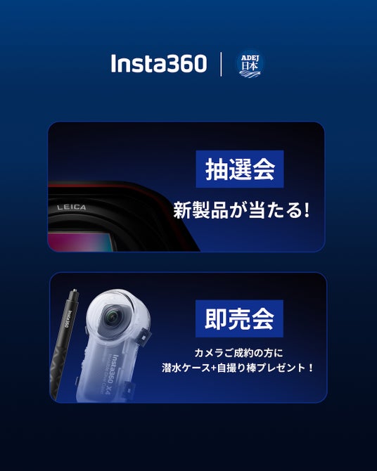 イベントでは、多くのダイバーに支持されている360度カメラ「Insta360 X4」、低照度撮影に優れたアクションカメラ「Insta360 Ace Pro」、水中用のハウジング「見えない潜水ケース」、水中撮影を便利にする関連アクセサリーを展示、特別価格にて販売いたします。ぜひ、このお得な機会にお立ち寄りください。