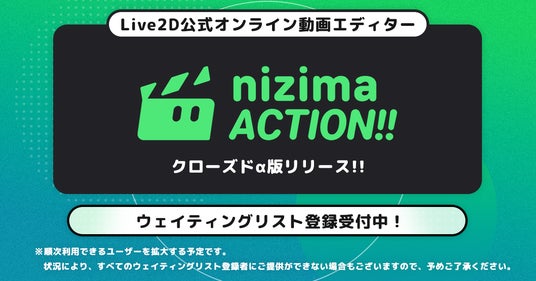 2Dイラストに立体的なアニメーションを加える表現技術「Live2D」の開発を行う株式会社Live2D(本社:東京都新宿区、代表取締役:中城哲也、以下、Live2D社)は、2024年10月22日(火)からLive2Dを使って気軽にリッチな動画編集ができるオンライン動画エディター「nizima ACTION!! クローズドα版」の提供を開始しました。