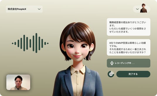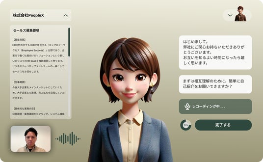PeopleX、バーチャルヒューマンによるAI面接官事業に参入。採用面接でAIを活用し、求職者の採用体験をアップデート