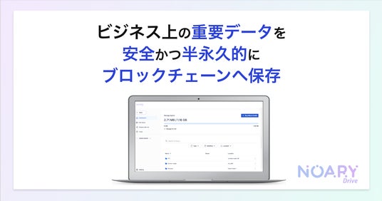 暗号資産不要でブロックチェーンへ簡単にファイルを永続保存!!「ノアリードライブ」を本日10月23日にリリース!