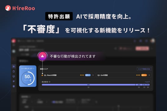 「日本をもう一度、モノづくりで一番へ。」を掲げ、企業のエンジニア強化プラットフォームを提供する株式会社ハイヤールー(本社:東京都渋谷区、代表取締役:葛岡宏祐)は、エンジニア採用のミスマッチを防ぐコーディング試験サービス『HireRoo(ハイヤールー)』( https://hireroo.io )において、候補者の試験中の不審な行動をAI検知し「不審度」として可視化する機能をリリースしました。本技術について特許を出願中です。
