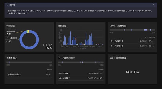 レポート画面。ページ離脱やGoogle検索の時間割合等をグラフで可視化
