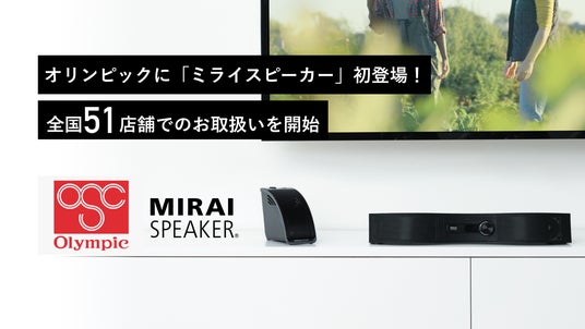「ミライスピーカー」シリーズは、2020年5月の発売開始以来、自社ECやAmazon/楽天などのECモールを中心に販売展開してまいりました。一方で、店舗にて「ミライスピーカー」を手に取り、購入検討されたいお客様も多数いらっしゃることから、2022年12月より大手家電量販店などを中心とした実店舗での販売をスタートさせ、現在全国1800店舗超の店舗でお取り扱いいただいております。さらに、この度、首都圏を中心にさまざまな店舗スタイルと独自の品揃えで展開しているOlympicでのお取り扱いが新たに開始されます。