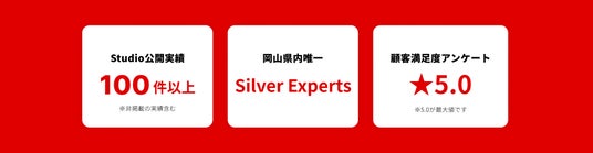 今回、ARTERYは制作実績数や顧客満足度アンケートなどの結果からBronzeからSilverへランクアップとなりました。Studio Silver Expertsは岡山県唯一となります。