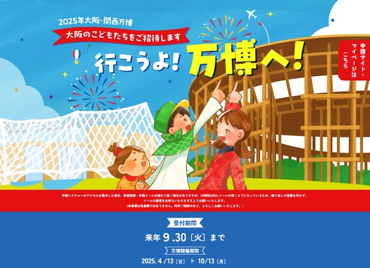 2025年大阪・関西万博において、次代を担う子どもたちに世界160ヶ国を超える国々の英知が結集された最先端の技術やサービス等に直接触れる体験により、将来に向けて夢と希望をたくさん感じ取ってもらうため、大阪の子どもたちに対し、万博の入場券(チケットID)により配付しているものです。