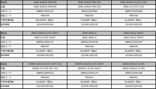 株式会社ニューエックス(本社:東京都千代田区)は、取り扱いメーカーGIGABYTE社より最新のIntel(R) Core(TM) Ultraプロセッサーに対応したZ890チップセット搭載マザーボード「GIGABYTE Z890 AORUS MASTER」、「GIGABYTE Z890 AORUS PRO ICE」、「GIGABYTE Z890 AORUS ELITE X ICE」、「GIGABYTE Z890 AORUS ELITE WIFI7」、「GIGABYTE Z890 AERO G」、「GIGABYTE Z890 EAGLE WIFI7」、「GIGABYTE Z890M AORUS ELITE WF7 ICE」、「GIGABYTE Z890M AORUS ELITE WIFI7」、「GIGABYTE Z890I AORUS ULTRA」シリーズ計9製品を2024年10月25日(金)より順次発売いたします。