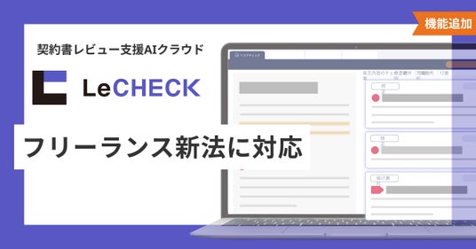 このような背景から「LeCHECK」は、フリーランス新法に特化した契約書のレビューが可能になる「フリーランス・事業者間取引適正化等法マスター」の機能追加と契約書のひな型を追加しました。