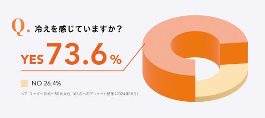 Be-A Japanがユーザー163名にとったアンケートによると、実に73.6%もの人が「冷え」を感じていると回答。生活習慣・生理・更年期によるホルモンバランスの乱れ、ストレスや栄養不足、運動不足など、冷えの原因は様々です。