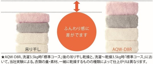 そのほか、「AQW-D8R」にはシワを抑えてガンコな汚れも素早くキレイに洗い上げる「オールラウンド浸透洗浄」や、落ちにくい黄ばみを繊維の奥からキレイにする「お湯洗いモード」、ふんわり仕上げながら、常に除菌(※2)もできる「洗乾除菌コース」、日々のおそうじの手間を省く「乾燥フィルター自動おそうじ」などの便利な機能を搭載。毎日の洗濯を快適にサポートいたします。
