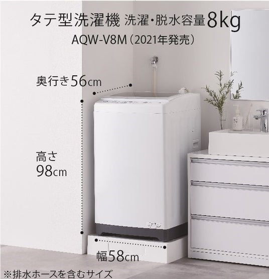 ドラムを水平に配置することで、大容量のまま本体の小型化を実現したAQUAの「まっ直ぐドラム2.0」シリーズに、初の8kgタイプ「AQW-D8R」が登場。これまで展開していた12kgタイプ、10kgタイプと合わせて、一人暮らしなどの少人数世帯の方にもより選びやすいラインナップとなりました。